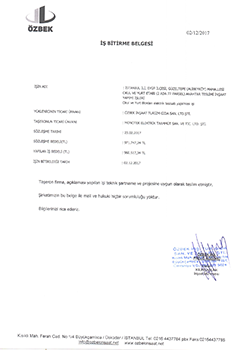 Alibeyköy 2 Ada 77 parselde yer alan, 971.747,24 TL sözleşme bedeli ile yürütülen Okul-Yurt Projesi anahtar teslimi elektrik taahhüt işi'ne ait İş Bitirme Belgesi, 02.12.2017 tarihi itibariyle tarafımıza teslim edilmiştir.